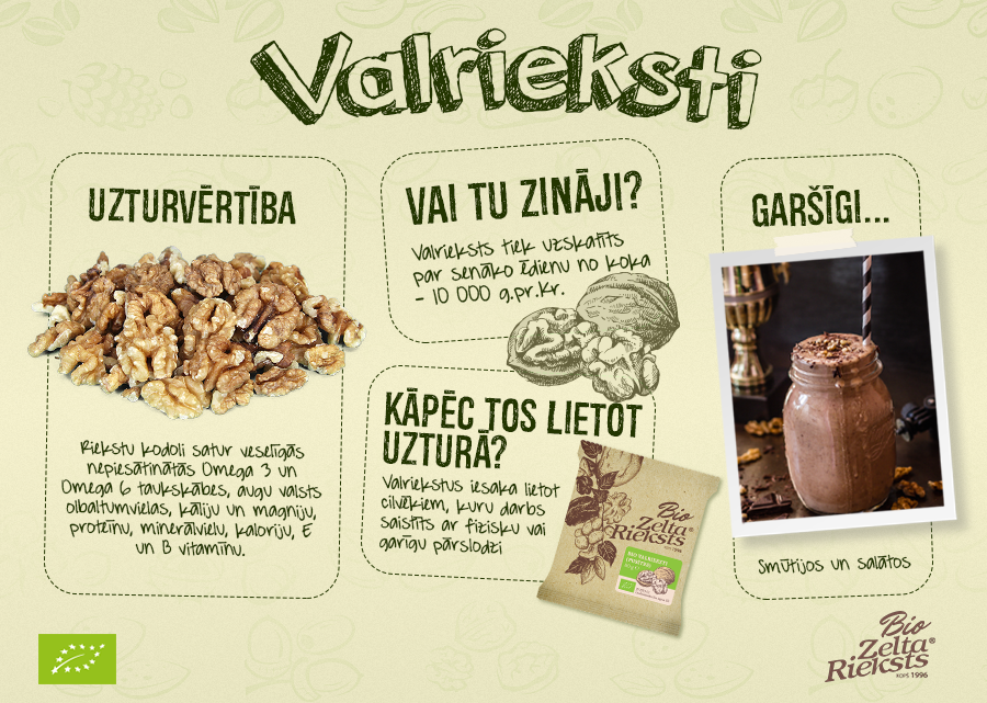 Published by Gemoss at 2016.10.28 Valrieksti! Valriekstu koki ir izplatījušies no Persijas uz Grieķiju, Vidusjūras valstīm. Šobrīd lielākie ražotāji ir ASV- Kalifornija, Ķīna, Turcija, Francija, Moldova. Izmantošana ir ļoti daudzveidīga: ļoti plaši pārtikas […]
