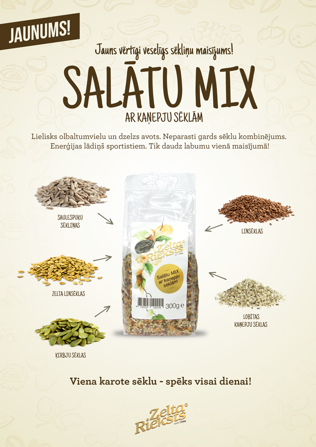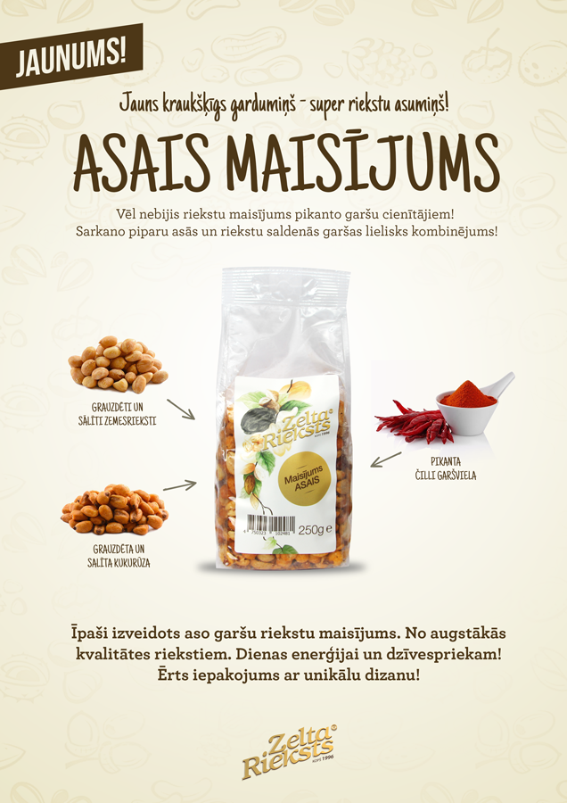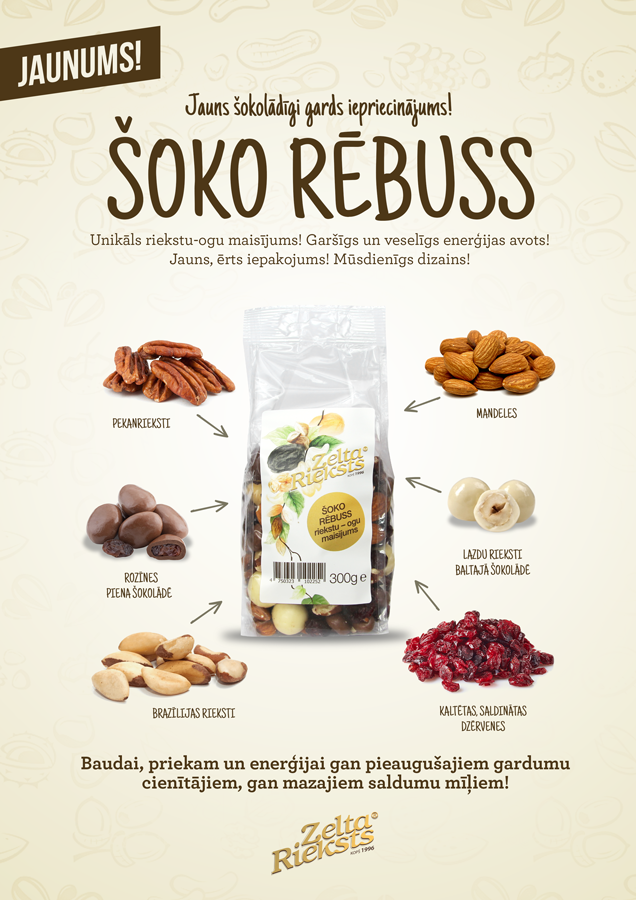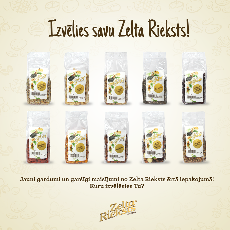 Esam priecīgi prezentēt jauno Zelta Rieksts iepakojumu! Zīmola dizains atgādina par tā senajām tradīcijām. Dizainā iestrādātā žāvēto augļu un riekstu virtene ir vēstures liecība pirmajām safasētajām […]